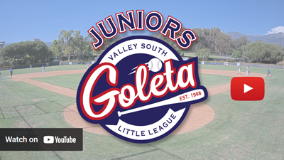 Goleta Valley South Little League, is excited to announce that we will be offering continuous live video (sometimes with background audio) streaming/webcasting through YouTube.com. To access the live feed, go to GVSLL.com and select the “4K Live Streaming” tab from the vertical menu bar OR go to our YouTube Channel: https://www.youtube.com/@GVSLL-Videos.